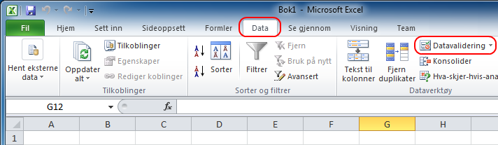 Med validering kan du begrense hva slags data brukeren kan registrere i en celle.