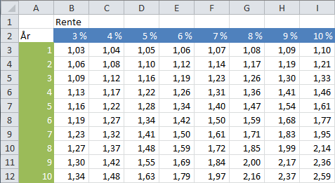 - Legg inn formelen som beregner renter og renters rente i B3.