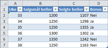 Bruk HVIS-funksjonen til å lage formelen som avdekker om det blir bonus for hver uke.