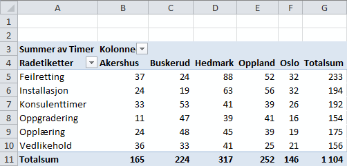 Lag en pivottabellrapport av timelisten, lek deg med å lage forskjellige utvalg av dataene, og få tabellen til å sortere på en fornuftig måte. Eksempler på ting du kan finne ut: