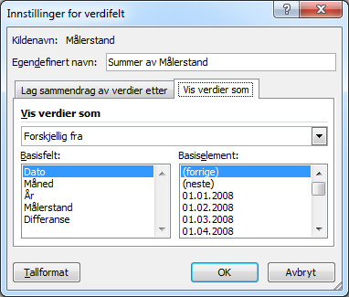 - La "målerstand" vises som en kalkulert verdi, hvor verdien skal være forskjellen fra (les: forskjellig) forrige dato. Hva er forskjellen på denne verdien og kolonnen vi beregnet som differanse?